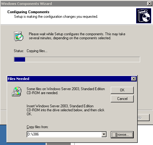 lungo la strada, la procedura guidata vi chiederà di inserire il Windows Server 2003 sul CD-ROM.