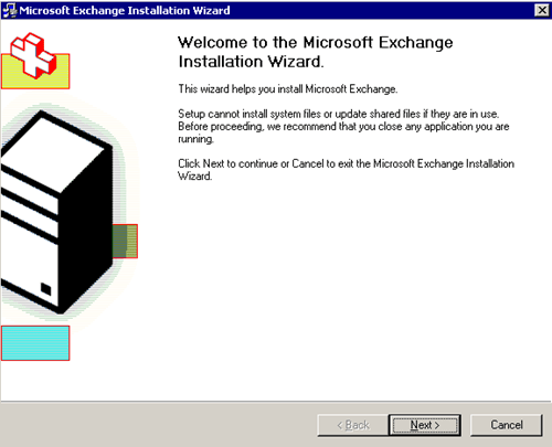 Ora dovremmo essere pronti per l'installazione di Microsoft Exchange Server 2003 per la prima volta.Pop-in il CD di Exchange Server 2003 sul CD-ROM, fare clic sul file di installazione, ma il file di installazione sul SETUPI386 directory. la seguente finestra dovrebbe venire: