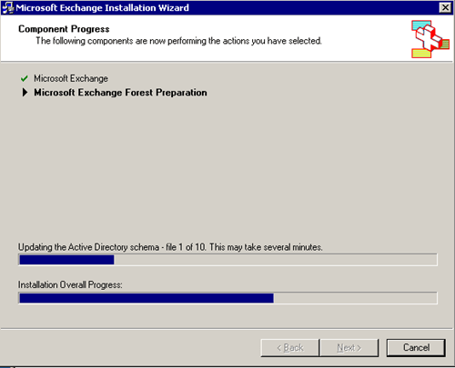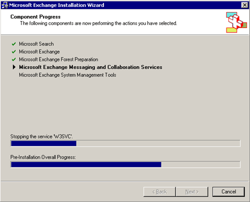 Microsoft Exchange 2003 dovrebbe iniziare l'installazione ... a seconda della velocità del server, che dovrebbe prendere un po '.