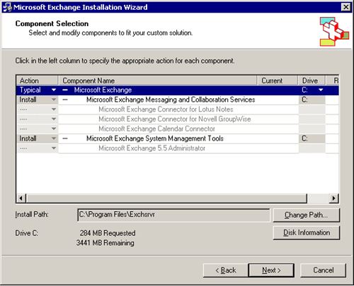 Successivamente, avremo bisogno di selezionare il tipo di installazione scambio che vogliamo. selezionare la tipica opzione e assicurarsi che Microsoft messaggi e servizi di collaborazione è selezionato, nonché strumenti di gestione del sistema di Microsoft Exchange sono impostati per installare.
