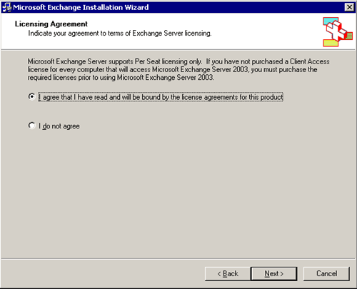 Pop-in il CD di Exchange Server 2003 sul CD-ROM, fare clic sul file di installazione, ma il file di installazione sul SETUPI386 directory. la seguente finestra dovrebbe venire: